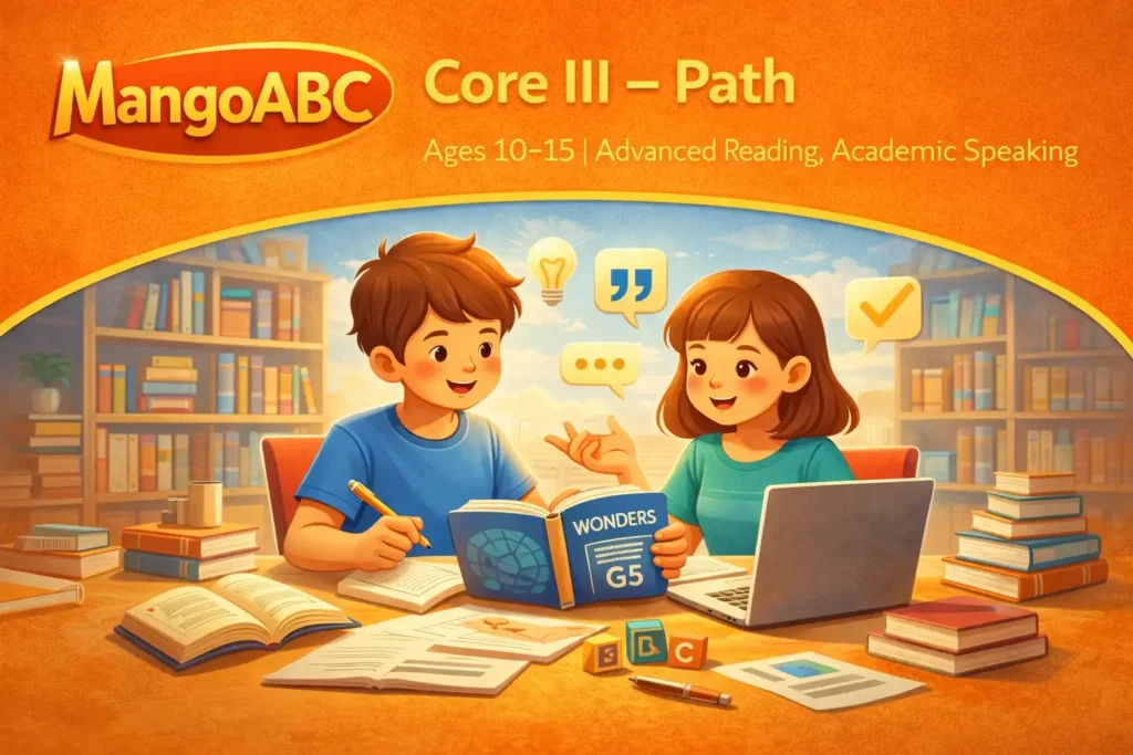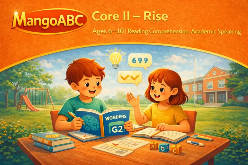 Aligned with the Common Core State Standards (CCSS), the course focuses on the integrated development of reading comprehension, speaking skills, and early grammar awareness, helping students move from understanding English to using it with structure and purpose. Through guided reading, interactive discussion, and task-based activities, students learn to express ideas, retell information, and collaborate using age-appropriate academic language.