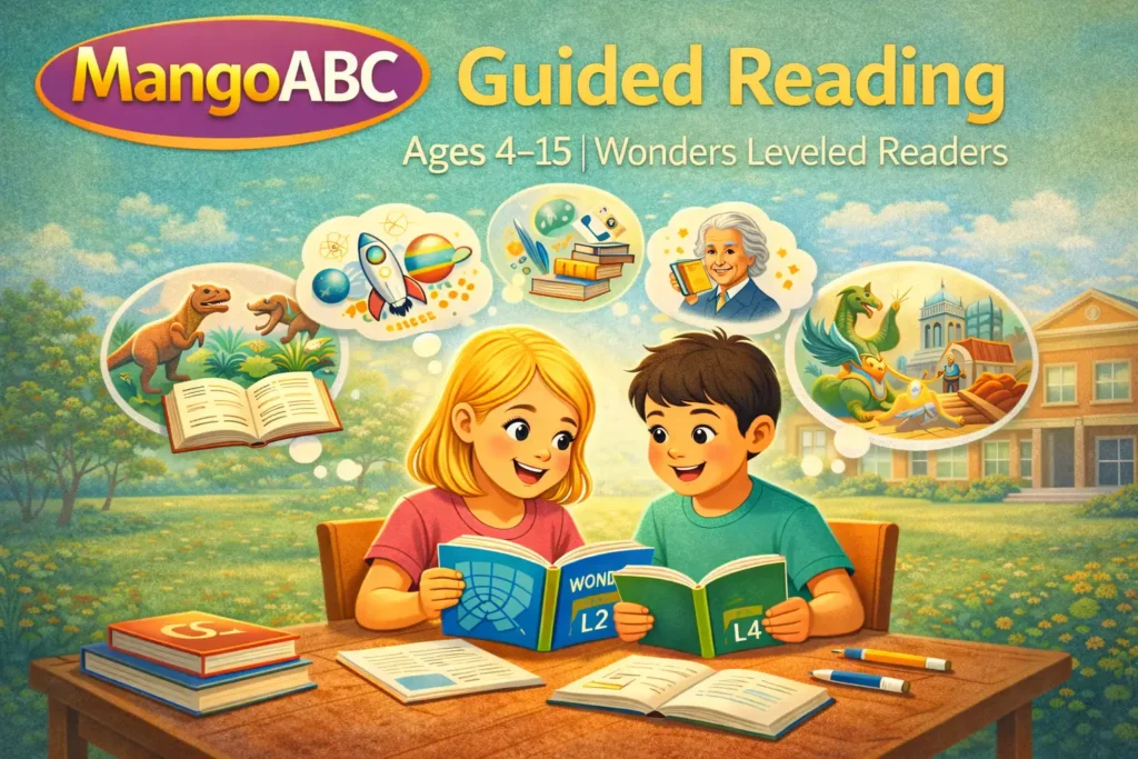 The Guided Reading Program is a leveled reading course built on the WONDERS reading system, designed to develop students’ English reading skills from early literacy to advanced comprehension.